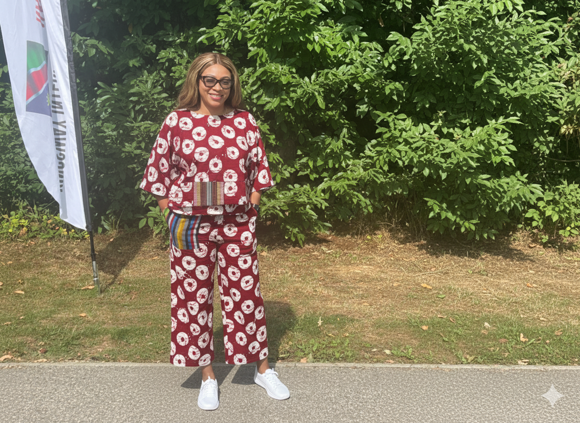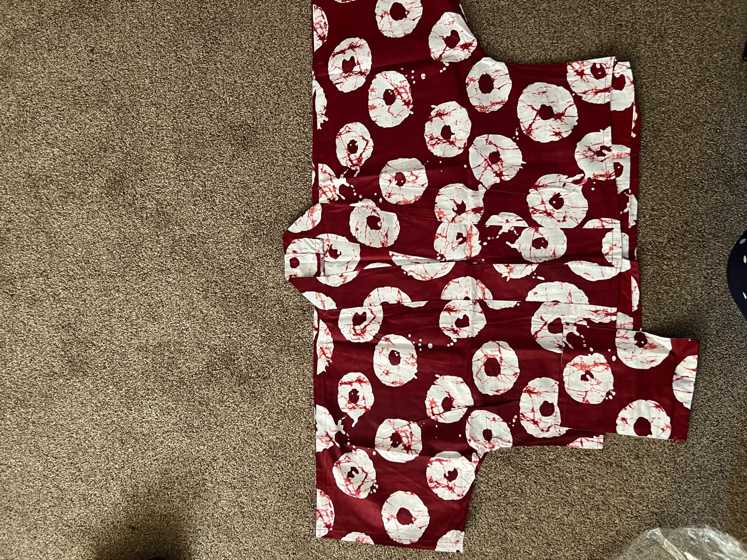 Stand out with our Ankara Top & Bottom Set, featuring a deep burgundy base adorned with large, abstract white circular patterns reminiscent of traditional tie-dye techniques. The eye-catching design adds cultural authenticity and modern flair, making this set a wardrobe essential for fashion lovers.